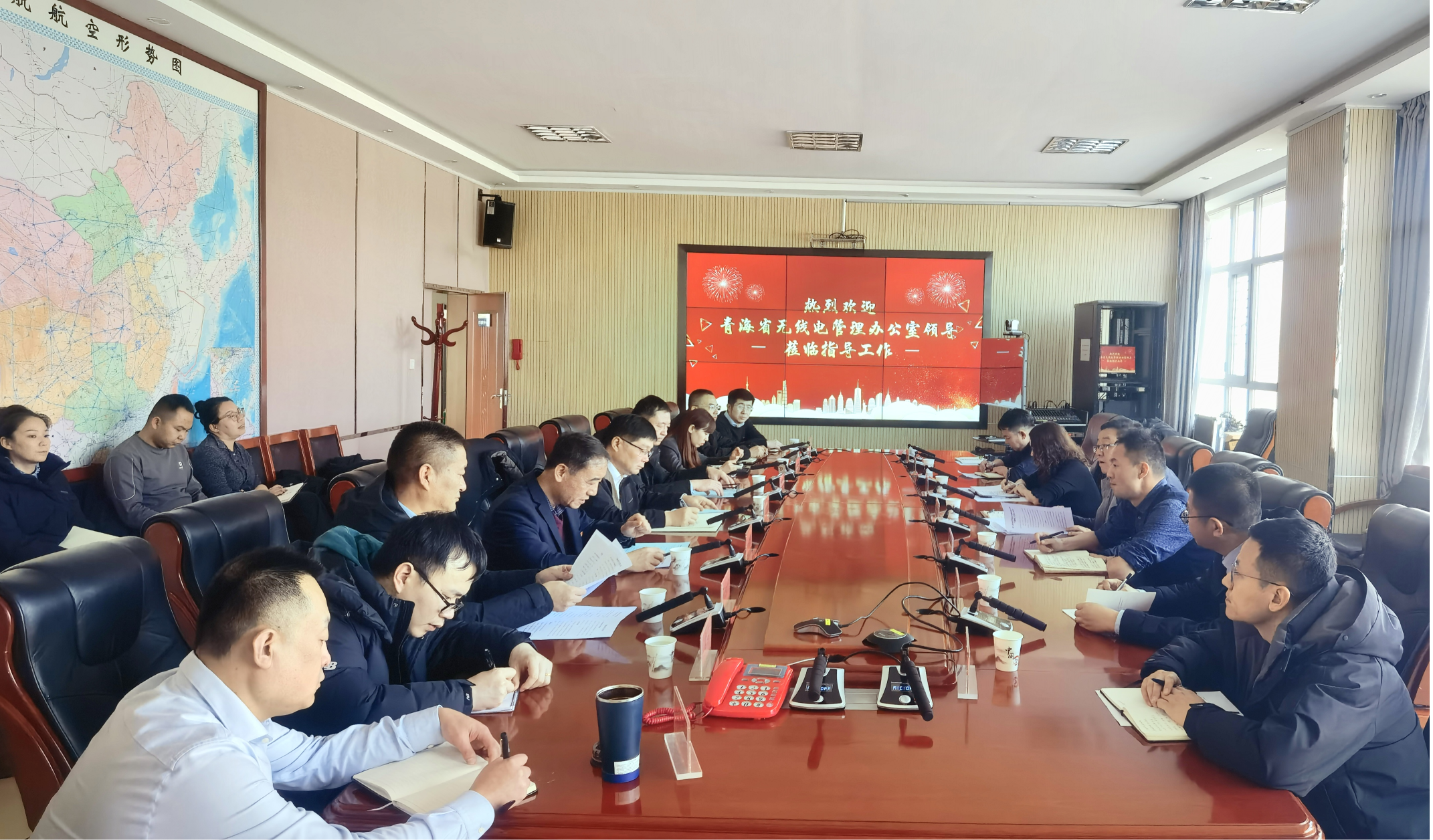在民航部門調研中,調研組參觀了空管青海分局航管進近管製室、氣象台、技保監控大廳及塔台管製室,深入了解了航空通信、導航、監視等部門“兩節”“兩會”期間無線電業務運行情況。在與民航青海監管局、空管青海分局西寧機場公司的座談中,就民航無線電台站許可民航專用頻率保護、無人機反製設備與民航飛行安全共存兼容、機場電磁環境整治等問題進行了探討。一致表示,要進一步落實民航無線電專用頻率保護長效機製,強化協作力度,合力守護好空中安全生命線。